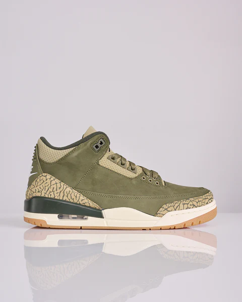 Air Jordan 3 lineup, recently released in the “Medium Olive” colorway, which has become popular among collectors and sneaker enthusiasts.